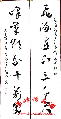 段講政為渭河書畫藝術(shù)研究會副會長兼秘書長劉飛峰撰嵌名聯(lián)并附留言: 飛流直下三千尺; 峰筆欲書十萬年。 這是贈送書法家劉飛峰先生的游戲之作,然窺斑知豹,聊慰平生,曾自嘲:得聯(lián)若此,復(fù)夫何求。 ...