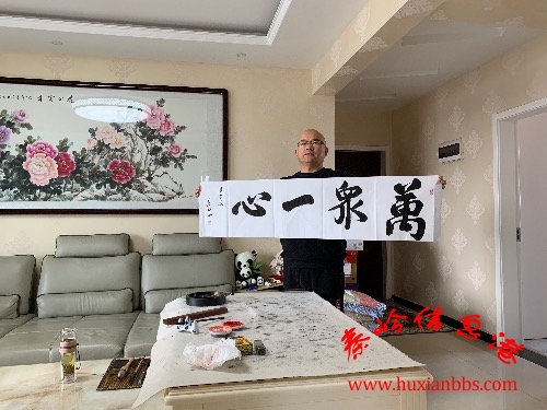 下午在家,心系武漢、情系中華。7 A5 r1 t! U4 {/ ?7 Q 書(shū)寫(xiě)“萬(wàn)眾一心”,共御疫魔!