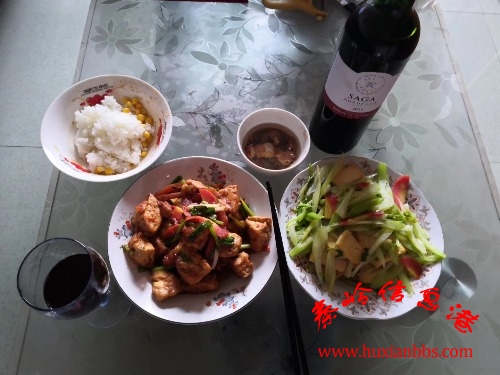 輔食芹菜豆腐肉,5 I7 ^- M! J$ f% k V( w9 } 主食米飯苞谷豆。. e6 H2 Z' F6 ~2 F( B 干紅一瓶桌上堆,9 a# Y6 O- O& U: ]1 u; K 自斟自飲喝三杯。+ P4 E( E$ w- X) p9 E % s* F w; {* ~9 h' ...