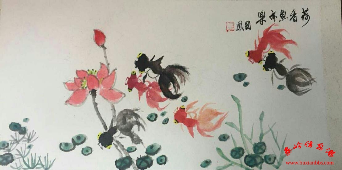 5 E6 D- U9 w& s9 O出水芙蓉次第開,清風(fēng)吹送暗香來。" d+ B/ J; a# B3 T! f 雙鱗獨(dú)戀此間樂,葉底優(yōu)游恣往回。 6 U. @& N0 i/ @# y2 Z9 V0 A$ W# y! l