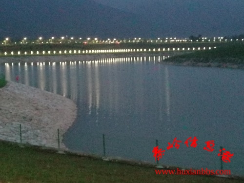 廊橋聳立云天上$ y' H& {0 [; \- r3 l 5 J' z4 O' {% h$ ^# ?% j. @: x: H車輛長停湖水旁
