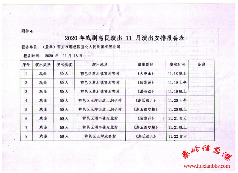 鄠邑區(qū)人民劇團11月惠民演出安排有高新草堂和周至 ...
