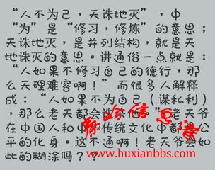 剛才,網(wǎng)名為“伐薪男人”,真名為石存學(xué)的長(zhǎng)兄給我發(fā)了一段視頻。這段視頻是中國(guó)人民大學(xué)李玖瑾教授的金句解讀。其中對(duì)“人不為己,天誅地滅”的解讀,糾正了我的錯(cuò)誤理解。; w1 W( I2 f ...