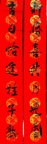 白露凝霜,氣候漸涼。 硯田耕耘,不計(jì)時(shí)光。 情隨墨染,悲喜無常。 時(shí)而愉悅,時(shí)而哀傷。 鄉(xiāng)黨憐里,婚嫁紅幛。 禿筆溫潤,心手雙暢。
