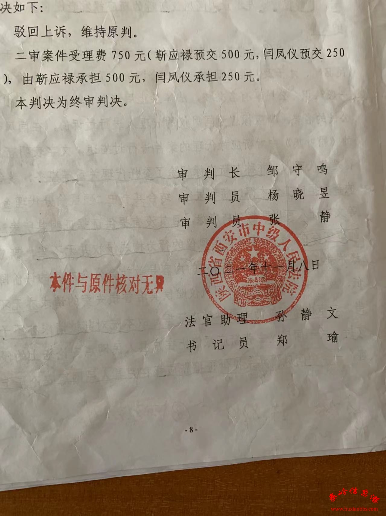 續(xù)昨天: 五、盜取了我的工作證照片——證明我是法律工作者。但我從來沒有說過我是律師。你用“一輩子都沒有律師資格證”來酸我只能是自己打臉。你把照片裁剪了發(fā)上來(就和你把判決不敢全部發(fā)上來一樣)只能說明你心懷鬼胎。敢把全照片發(fā)上來嗎?& z% ^! [9 N. c 六、你不要用你陰暗的心思誆別的律師搞道德綁架——閆鳳儀委托我當(dāng)代理打官司談不上義款。如果有人檢舉閆鳳儀把侵吞裴智的捐款吐出來才是義款呢!附我的再審申請(qǐng):/ J3 |% S: k A7 a/ H 民事再審申請(qǐng), V: L& P& C: D4 S/ v* D, t+ E 申請(qǐng)人(原審原告、二審上訴人):靳應(yīng)祿,男, 電話13991180571 被申請(qǐng)人(原審被告、二審被上訴人):閆鳳儀,女 , 請(qǐng)求事項(xiàng) 一、撤銷西安市中級(jí)人民法院(2021)陜01民終17884號(hào)民事判決書,發(fā)回重審或依法改判為被申請(qǐng)人向申請(qǐng)人賠償名譽(yù)損失費(fèi)20000元。 二、本案訴訟費(fèi)由被申請(qǐng)人承擔(dān)。 事實(shí)與理由 一、西安市中級(jí)人民法院(2021)陜01民終17884號(hào)民事判決書有意“漏寫”事實(shí)真相 孤寡老人裴智(女)遺囑將自己生前銀行卡上未用完的存款全部捐給貧困學(xué)生,托本案被申請(qǐng)人閆鳳儀實(shí)施。由于閆鳳儀的失誤,此款被裴xx冒領(lǐng)。閆焦急萬分,委托本案申請(qǐng)人靳應(yīng)祿當(dāng)代理起訴追討。一審審理過程中,閆接受辦案法官的“建議”,同意與該案被告裴xx將裴智的存款私下分掉一部分,捐一部分。這種做法不但違背了裴智的遺囑,而且極不道德。靳應(yīng)祿出自義憤,極力進(jìn)行阻攔,致閆私分的企圖終沒能得逞(西安思源學(xué)院老師賀芳玉見證)。這是第一步。第二步呢?離奇而陰險(xiǎn)。離奇:該案一審判閆只聯(lián)系受贈(zèng)單位,僅此而已,判捐贈(zèng)由被告裴xx實(shí)施,剝奪了閆的實(shí)施資格,亦與裴智遺囑相違,瑕疵明顯,但閆卻堅(jiān)持不上訴;陰險(xiǎn):若不上訴,一審判決自然生效,就可以私分了。靳應(yīng)祿再三闡明上訴的必要性以及不能私分的大道理,閆理虧詞窮,卻以老伴做手術(shù)(事實(shí)證明是道謊)拿不出上訴費(fèi)做擋箭牌。靳應(yīng)祿盡管很不高興,但為了顧全大局,便墊繳了上訴費(fèi)。閆絕對(duì)沒有想到靳應(yīng)祿會(huì)主動(dòng)墊繳上訴費(fèi),只得勉強(qiáng)同意上訴。二審終于完勝。由于靳應(yīng)祿攪了閆的“私分”夢(mèng),閆恨之入骨,便對(duì)靳應(yīng)祿施以瘋狂的誣陷和誹謗——這是根源,也是靳應(yīng)祿上訴狀上的內(nèi)容,西安市中級(jí)人民法院(2021)陜01民終17884號(hào)民事判決書不應(yīng)該有意漏寫。 裴智存款190784.93元,閆鳳儀實(shí)際捐152228元,所差的幾萬元以及閆將該款遲遲不捐出用來給自己買理財(cái)產(chǎn)品生的息(閆自己講的)皆被其侵吞了。更有甚者,閆為了逃避監(jiān)督,甩開原定舉行捐贈(zèng)儀式請(qǐng)代理人及其單位陜西省老法協(xié)、裴智生前工作和退休單位及在此案中出庭作證的文友等,不惜背信棄義(已與鄠邑區(qū)教育局簽訂了捐贈(zèng)協(xié)議。是一審判決的先決條件)將款捐往別處。 二、西安市中級(jí)人民法院(2021)陜01民終17884號(hào)民事判決書因果關(guān)系不成立 原審鄠邑區(qū)人民法院(2021)陜0118民初982號(hào)民事判決認(rèn)定閆鳳儀對(duì)申請(qǐng)人靳應(yīng)祿構(gòu)成名譽(yù)侵權(quán),二審?fù)彆r(shí),被申請(qǐng)人閆鳳儀的委托代理亦當(dāng)庭認(rèn)可了一審判決書上的事實(shí)??墒嵌徫靼彩兄屑?jí)人民法院(2021)陜01民終17884號(hào)民事判決書卻說“靳應(yīng)祿并沒提供證據(jù)證明因該書中的內(nèi)容導(dǎo)致社會(huì)公眾對(duì)其的評(píng)價(jià)降低(見二審判決第7頁倒數(shù)第5行)”——認(rèn)可了無法否認(rèn)的原因(事實(shí)),卻否定了結(jié)果?!違背了因果關(guān)系的基本原則。此其一。其二,被申請(qǐng)人閆鳳儀辱罵申請(qǐng)人靳應(yīng)祿為“碩鼠”、“驢”,又用了“偷分代理金”等誣陷詞兒,其不但在朋友圈里散布,而且寫在書中(一審當(dāng)庭承認(rèn)已送出900多冊(cè)),對(duì)申請(qǐng)人靳應(yīng)祿而言,難道沒有造成嚴(yán)重的名譽(yù)傷害嗎! 三、西安市中級(jí)人民法院(2021)陜01民終17884號(hào)民事判決書適用法律不當(dāng) 本案原審引用《民法典》第三條、第一千零二十四條之規(guī)定,該第三條內(nèi)容是“民事主體的人身權(quán)利、財(cái)產(chǎn)權(quán)利以及其他合法權(quán)益受法律保護(hù),任何組織或者個(gè)人不得侵犯”、第一千零二十四條內(nèi)容是“民事主體享有名譽(yù)權(quán)。任何組織或者個(gè)人不得以侮辱、誹謗等方式侵害他人的名譽(yù)權(quán)……”——此兩條規(guī)定內(nèi)容很清楚,講的是人身權(quán)利不得侵犯、不得以侮辱、誹謗等方式侵害他人的名譽(yù)權(quán),而被申請(qǐng)人閆鳳儀已經(jīng)違犯了, 一審判決卻將申請(qǐng)人靳應(yīng)祿請(qǐng)求追責(zé)的請(qǐng)求駁回,與法相悖。同理,二審將申請(qǐng)人靳應(yīng)祿請(qǐng)求追責(zé)的請(qǐng)求駁回,亦與法相悖。 四、 西安市中級(jí)人民法院(2021)陜01民終17884號(hào)民事判決書不應(yīng)該回避訴訟費(fèi) 申請(qǐng)人靳應(yīng)祿在上訴中稱原審鄠邑區(qū)人民法院(2021)