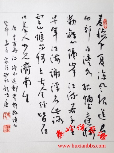 《歷代詩人詠鄠縣》冊頁之四: 書唐人皇甫冉詩: 《灃水送鄭豐鄠縣讀書》 麥秋中夏涼風(fēng)起,送君西郊及灃水。 孤煙遠(yuǎn)樹動(dòng)離心,隔岸江流若千里。 早年江海謝浮名,此路云山愜爾情。 上古全經(jīng)皆在口,秦人如見濟(jì)南生。 ...