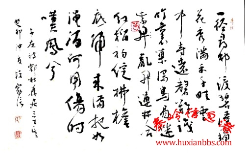 《歷代詩人詠鄠縣》冊頁之四十九(冊頁最后一篇) 韋莊 《鄠杜舊居二首之一》 (二) 一徑尋村渡碧溪, 稻花秀滿禾千畦。 云中寺遠磬難識, 竹里巢深鳥易迷。 紫菊亂開連井合, 紅榴初綻拂檐低。 歸來滿把如澠酒, ...
