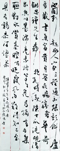 書 (陳寶平)詩《題雞鳴廬》(小六尺) 池閣新起故人家, 三徑通幽綠影斜。 廬有藏書真富貴, 身無疾病勝奢華。 荷鋤思種先生柳, 抱甕時澆隱士瓜。 洗硯清泉魚吐墨, 濡毫素楮筆生花。 尋摘章句集聯(lián)對, 欣賞秦腔 ...