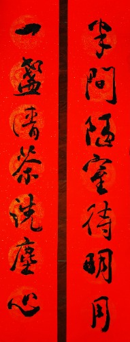 微信朋友網(wǎng)約書聯(lián): ?半間陋室待明月; 一盞清茶洗塵心。 橫額:竹苞松茂 ?