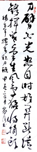 上林苑詩(shī)詞楹聯(lián)學(xué)會(huì)安排書(shū)寫(xiě)優(yōu)秀社課作業(yè)。 楊百年撰聯(lián): 春秋刀 刀劈白光,怒目時(shí)雄關(guān)斷隘; 鋒揮寒氣,生風(fēng)處猛將捐頭。